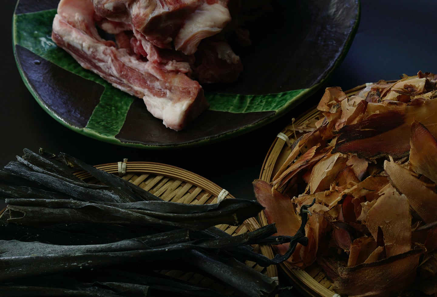 【出汁】 北海道産真昆布、国産鰹節、豚骨